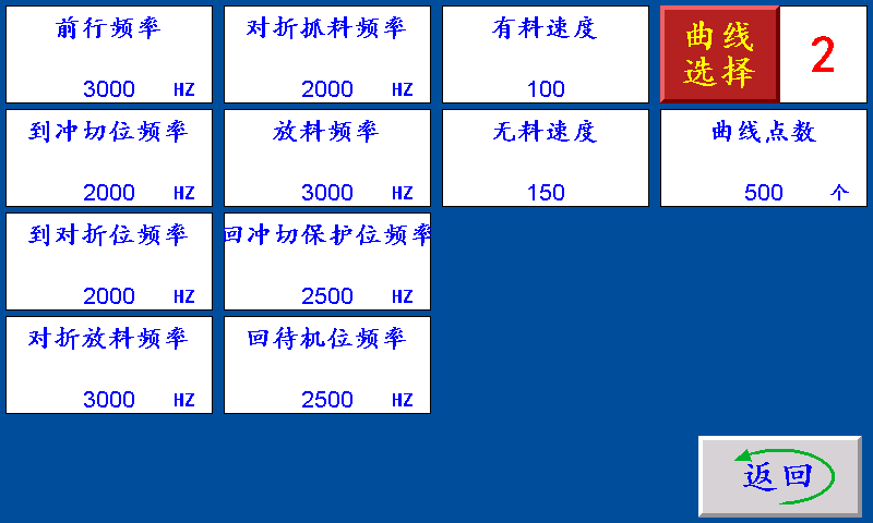 有料速度:机械手夹住料时,伺服(步进)电机的加减速时间,设定越大,伺服(步进)电机起步越快。 无料速度:机械手未夹料时,伺服(步进)电机的加减速时间,设定越大,伺服(步进)电机起步越快。 频率上限:机械手伺服(步进)电机的最高转速,设定越大,伺服(步进)电机的转速越快。 曲线选择:1~9,步进电机默认1,伺服电机默认6