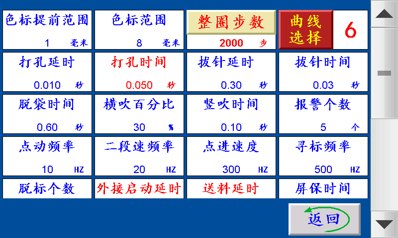 打孔延时:送料结束后延时此参数设定的时间后打孔信号输出。