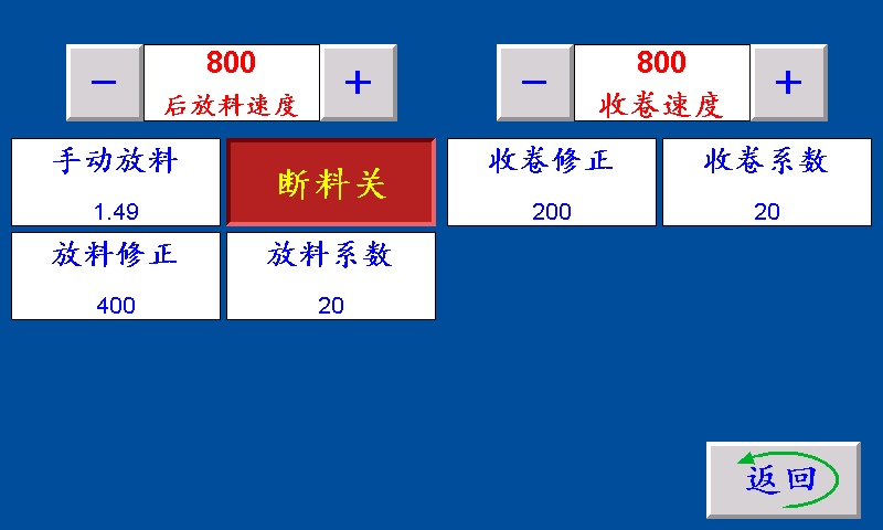 放料修正:控制收卷电机的加减速快慢,设定值越小越快。