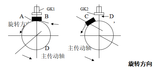 A ,开始送料位置,此时切刀向上运动,刚离开底刀,步进电机可顺利地将被制料送出(图1)。 B, 高位停机位置,此时切刀向上运动,至最高点,停机,可使烫切刀不致于破坏被制料(图2)。 C ,拖料极限位置,此时切刀向下运动,刚到底刀处,此时步进电机不能再送料,否则,被制料会堵于刀内或拉断(图3)。 A’取样逻辑位置,位于A与D之间。 ![]()